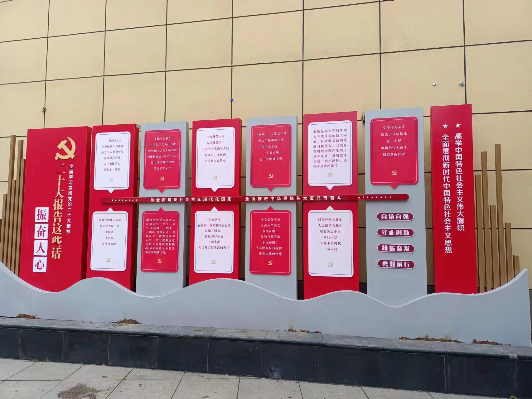 黨建標(biāo)識牌款式種類繁多,工藝制作也不盡相同,根據(jù)各個城鎮(zhèn)的小區(qū)環(huán)境和政治因素,黨建標(biāo)識牌是必須也是有必要的宣傳人文思想和政治思想的頭等大事。總之,紅色代表喜慶,也代表國家黨政的底色特征,紅色可以是黨規(guī),也可以是靚麗的風(fēng)景線;把黨建標(biāo)識牌安裝到千萬萬人的生活中是不錯的壯舉。